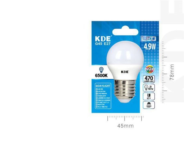LAMPADINA LED G45 E27 LUCE FREDDA 4.9W=47W 6500K